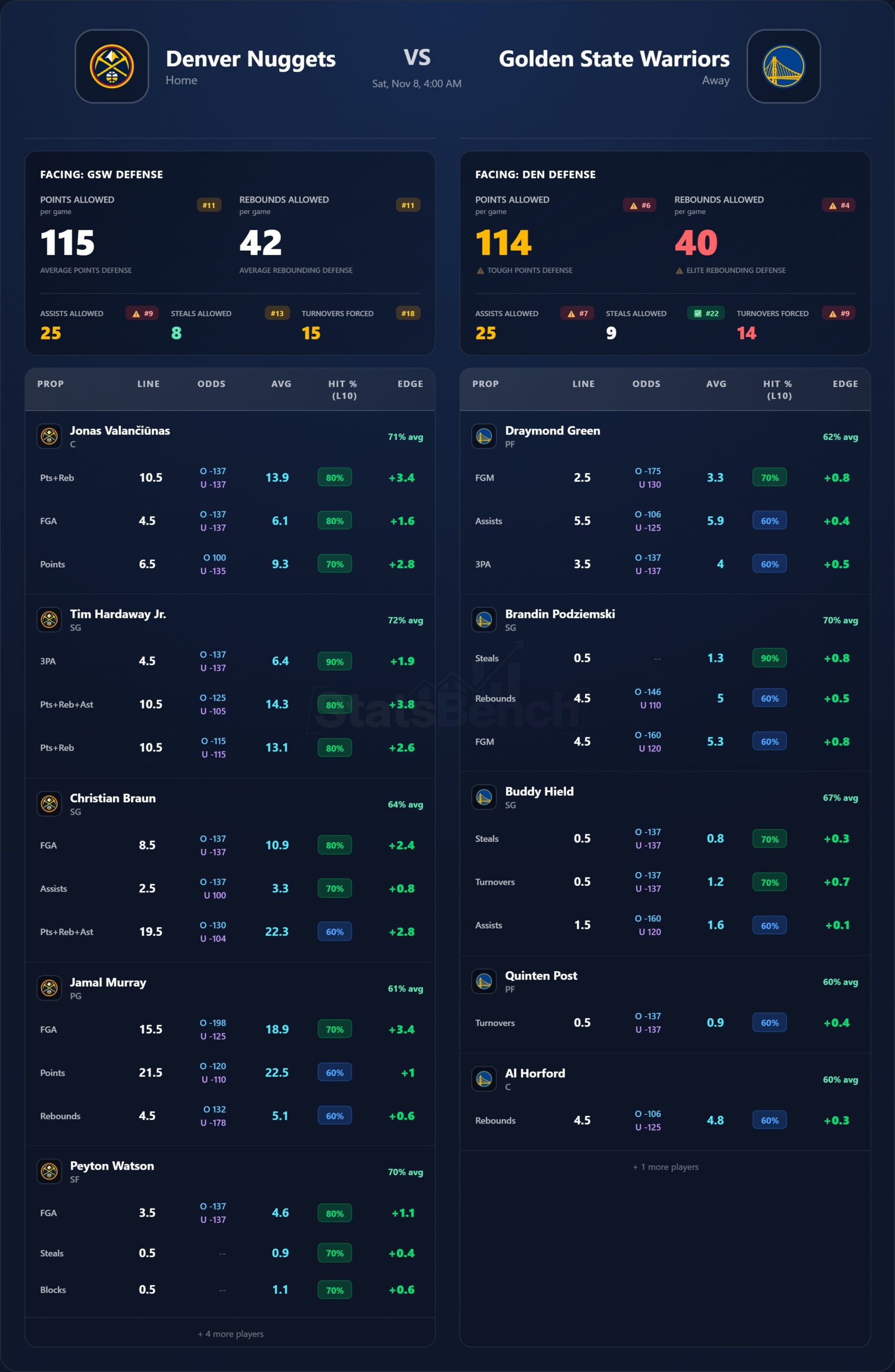 Last meeting: GSW 137, DEN 131 (OT, Oct 23)