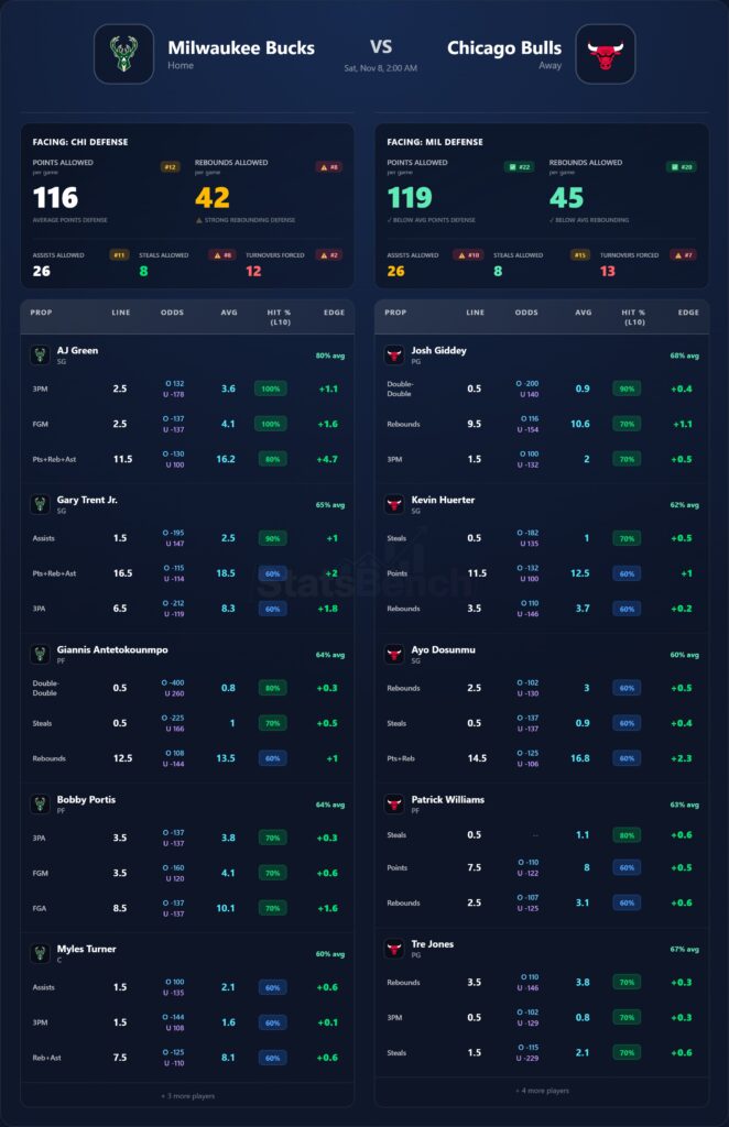 Angle: If Bulls keep the FT gap reasonable, their depth/pace can hang; otherwise Giannis overwhelms.